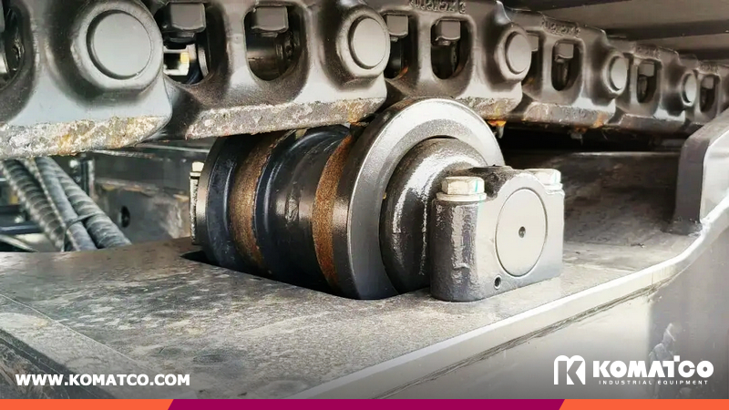Adjust track tension properly. Inspect track shoes and rollers for smooth operation.